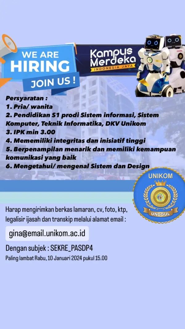 Unikom News: Informasi Lowongan Pekerjaan UNIKOM - Tenaga Pendidik 2024