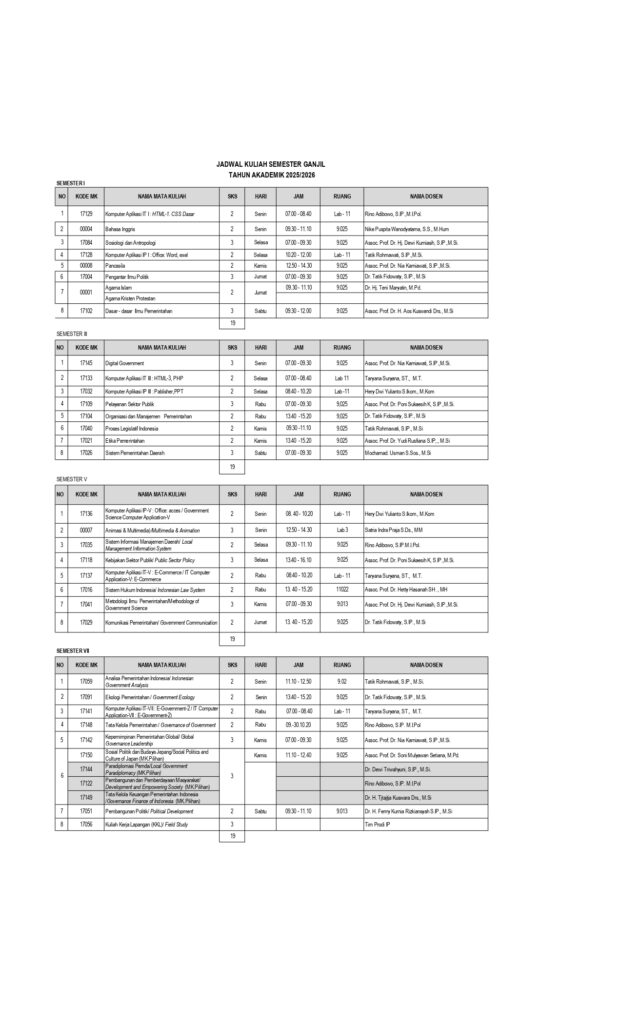 Jadwal Kuliah Semester Ganjil TA 2025/2026