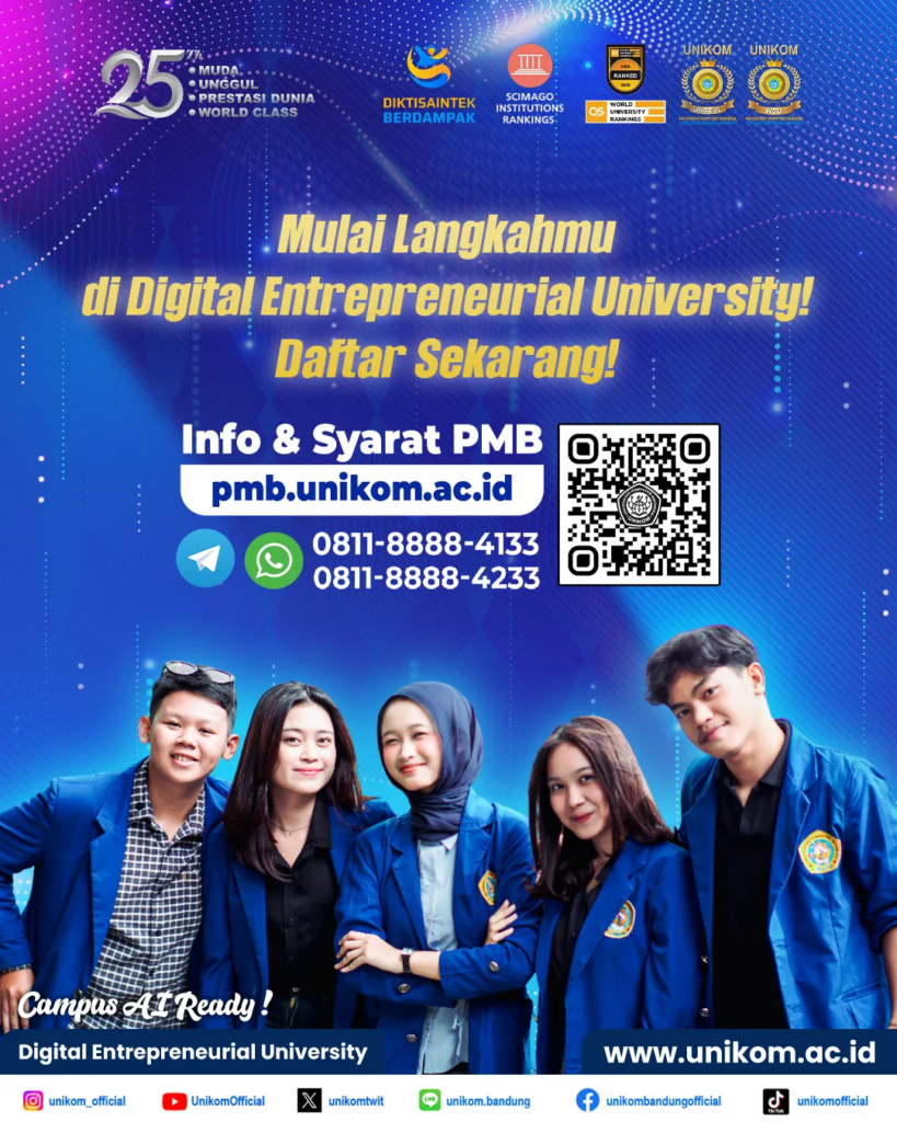 UNIKOM sudah menyandang status Campus AI Ready, lho! Di sini, kamu bakal disiapkan jadi lulusan yang adaptif dengan teknologi AI agar siap jadi entrepreneur maupun profesional di industri digital.