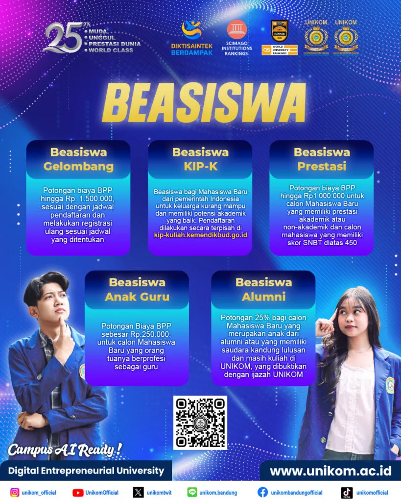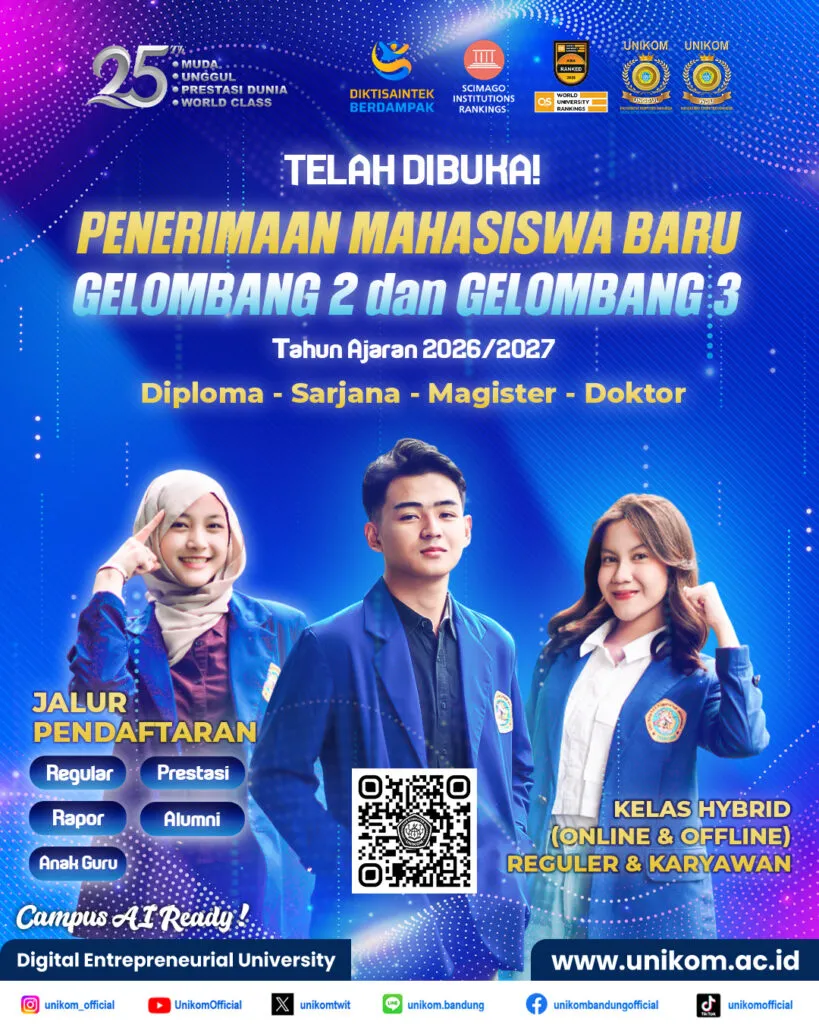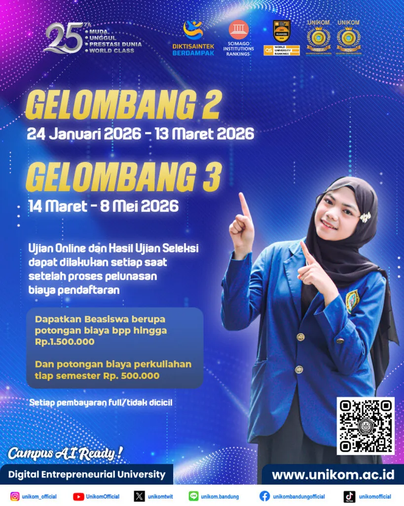 Lagi cari kampus yang bener-bener nyiapin kamu buat masa depan? UNIKOM jawabannya! Tersedia jenjang Diploma, Sarjana, Magister, hingga Doktor.