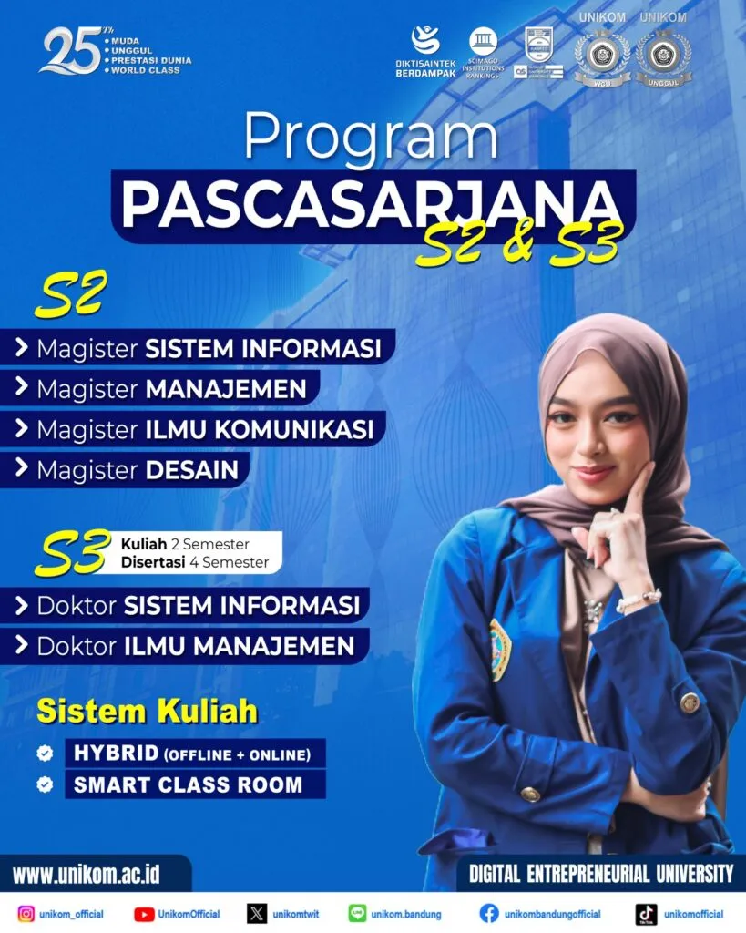 This is your opportunity to join UNIKOM at the Diploma (D3), Bachelor’s (S1), Master’s (S2), and Doctoral (S3) levels.