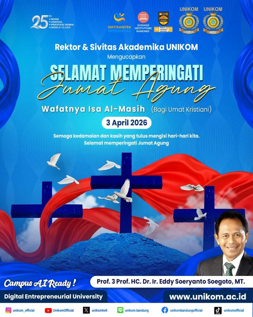 Rektor beserta segenap Sivitas Akademika UNIKOM mengucapkan Selamat Memperingati Jumat Agung, Wafatnya Isa Al-Masih, bagi Umat Kristiani.