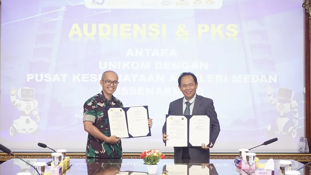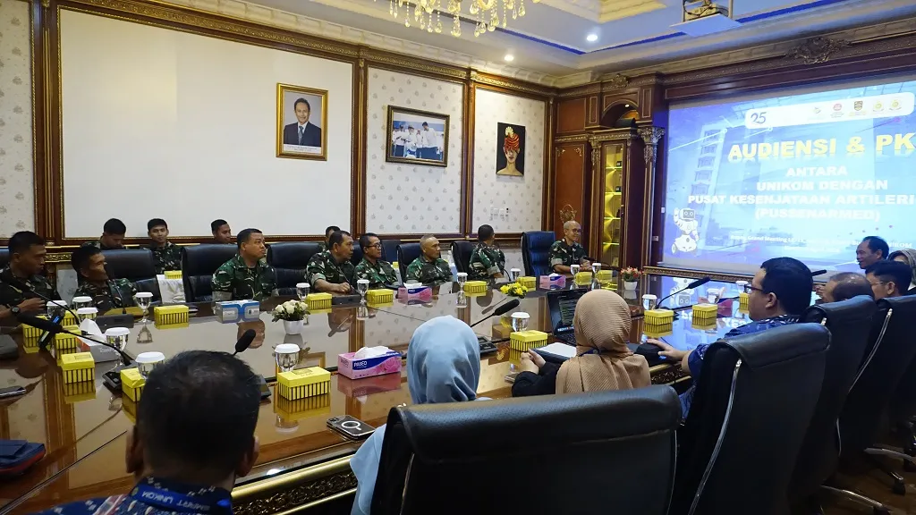 BANDUNG, UNIKOM — Di tengah gempuran teknologi dalam era perang modern, dinamika pertahanan tidak lagi bertumpu pada kekuatan fisik semata, melainkan pada keunggulan inovasi dan penguasaan teknologi canggih. Perkembangan pesat dalam bidang seperti Artificial Intelligence, sistem drone, hingga teknologi siber telah mengubah lanskap peperangan menjadi lebih kompleks, cepat, dan berbasis data. Dalam konteks tersebut, Universitas Komputer Indonesia (UNIKOM) bersama Pusat Kesenjataan Artileri Medan (PUSSENARMED), melakukan kerja sama melalui kegiatan audiensi dan Penandatanganan Kerja Sama (PKS) pada Kamis, 2 April 2026.